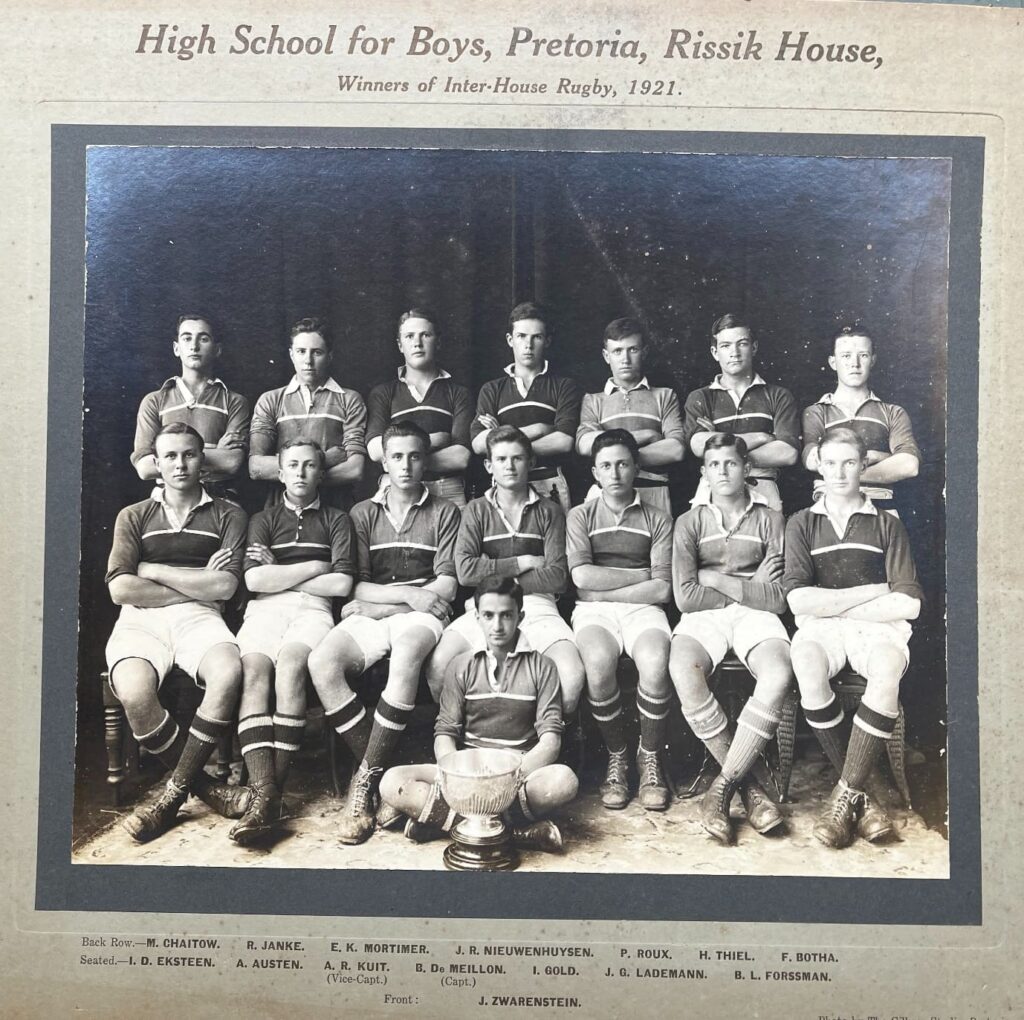 Hermann Thiel boarded in Rissik House at Pretoria Boys High School and from the beginning took an active part in social and sport activities as was evident from the numerous mementoes and photos he saved and cherished all his life.