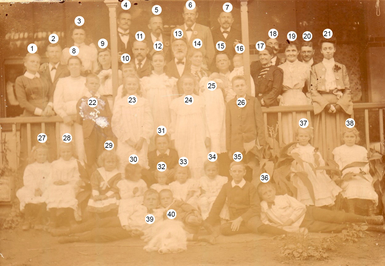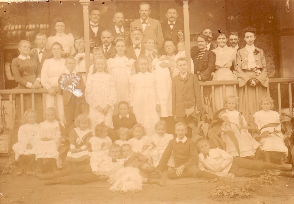 Nine years later in February 1905 two photos were taken at a similar event of mostly the same people but included spouses and children who were added to the Thiel clan during the intervening years. The event which brought the people together was the christening of Wilhelm Gustav Thiel (1905 – 1953), the youngest child of Karl Wilhelm Thiel (1867 – 1947) and Cecilie Magdalena Siemssen (1896 -1960)