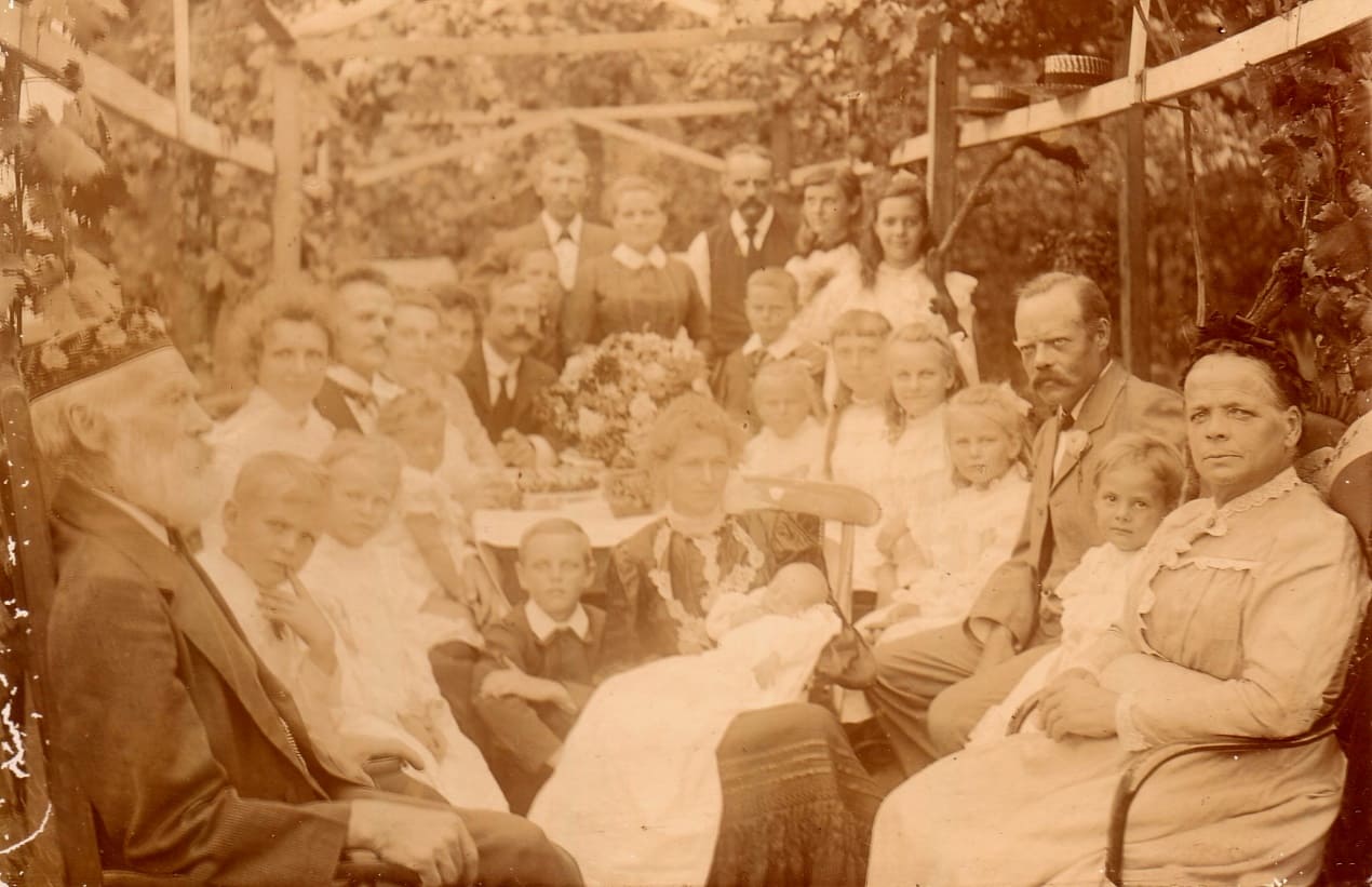 A larger group attending the christening of Wilhelm Gustav Thiel